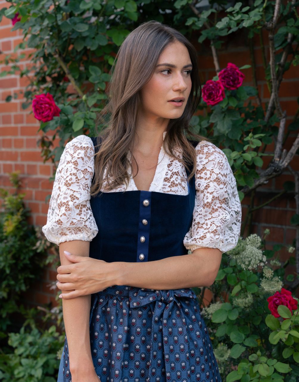 DIRNDLBLUSE SPITZENSHIRT STRETCH FLARE FLOWER