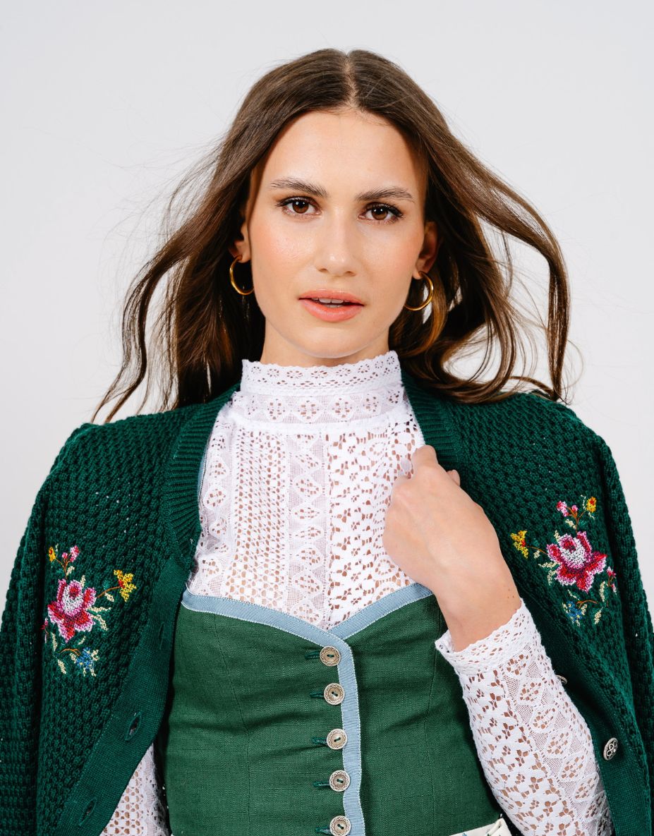 DIRNDLBLUSE STRETCH VINTAGE SPITZE FLOWERS LANGARM