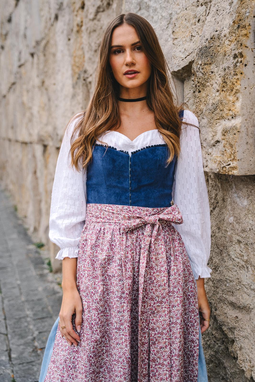 DIRNDLBLUSE STEHKRAGEN MÜNCHENER STREIFEN HELLBLAU