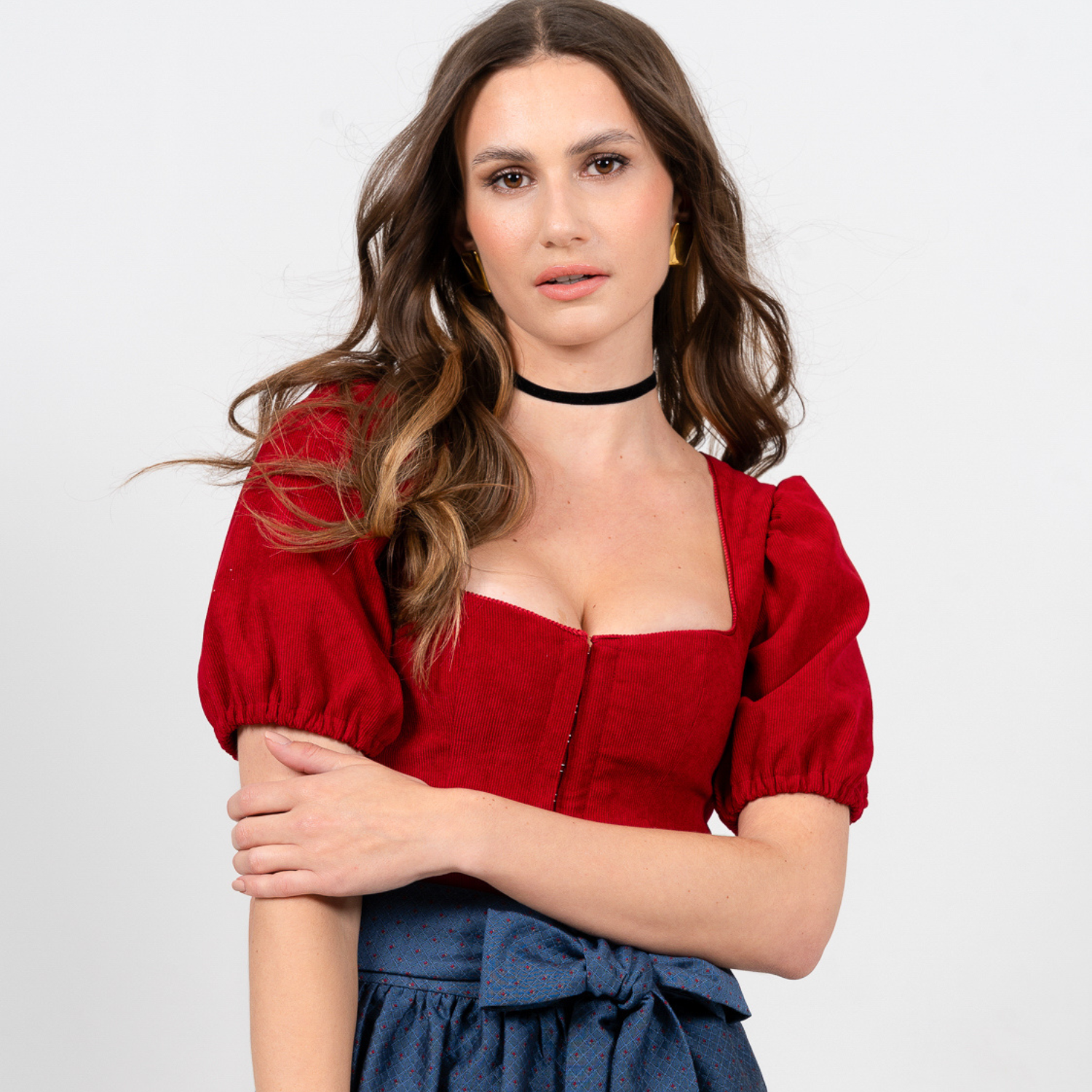 CORD DIRNDL FLARE TULIP KNALLROT/ BLAU